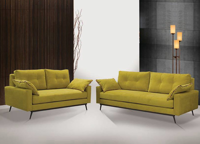 Μία πολύ μοντέρνα άποψη για τον χώρο του σαλονιού υψηλής αισθητικής και κομψότητας. Τα καθίσματα αποτελούνται από λάστιχο υψηλής πυκνότητας και μεγάλης αντοχής με επίστρωση ακρυλικής βάτας. Ο σκελετός εσωτερικά είναι κατασκευασμένος από φουρνιστή οξιά. Πλάτες με κομφορέλ και λάτεξ από γαζωτό ύφασμα. Τα πόδια είναι κατασκευασμένα από μέταλλο βαμμένα με ηλεκτροστατική βαφή, αλλά μπορείτε να επιλέξετε οποιοδήποτε σχέδιο μέσα από την πλούσια συλλογή μας. Διαστάσεις: 3θέσιος: 220 × 90, 2θέσιος: 170 × 90